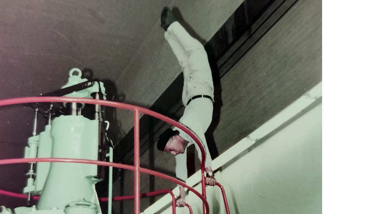 Voimalaitoksessa työskennellyt entinen sirkusvoimistelija esitteli Matille ja muille temppujaan, joita ei nykyisillä turvallisuusohjeistuksilla enää tehtäisi.