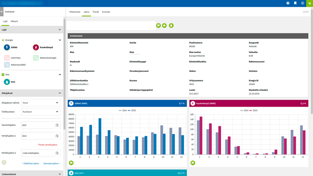Päällikön budjetointityökalun avulla laadit budjetin toteutuneiden kulutus- ja kustannustietojen pohjalta. Palvelussa voit myös tarkastella erikseen jokaisen seurattavan kohteen energiankulutusta.