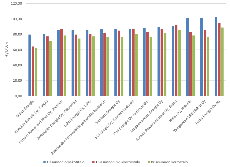 Statistics by Finnish Energy (published on 1 July 2019) are based on typical customers and include the thirteen largest cities in Finland.